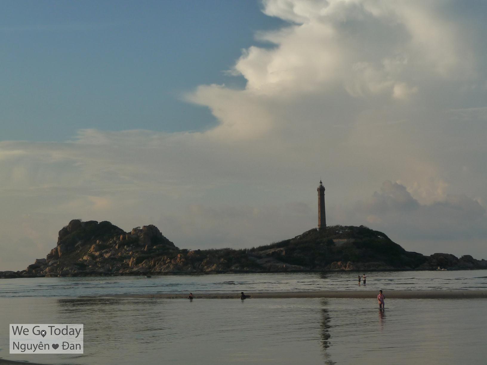 Ngắm bình minh, chụp hình xong. Rẽ vào đường để ra Hải Đăng. Ngọn Hải Đăng nghe đồn là hơn 100 năm gì đấy. Gửi xe cho mấy anh bảo vệ. Ra bơ biển, vì không phải lúc thủy triều xuống + cũng không thích đi tàu qua đó lắm. Nên chỉ chộp hình thôi. Ra lấy xe và phí gửi xe là 5000VNĐ.