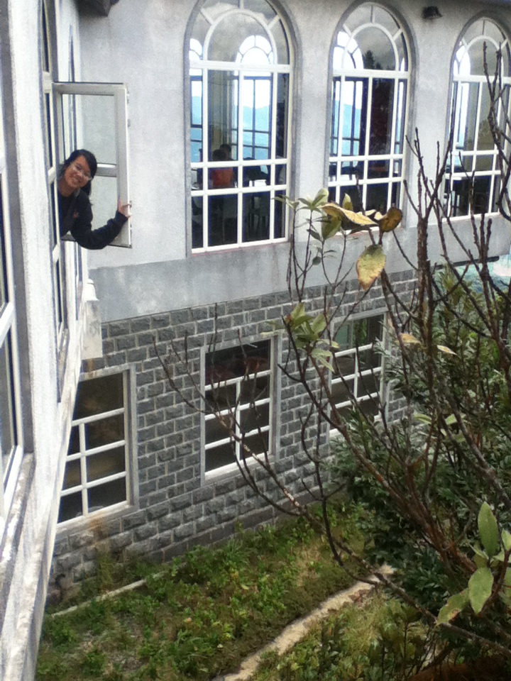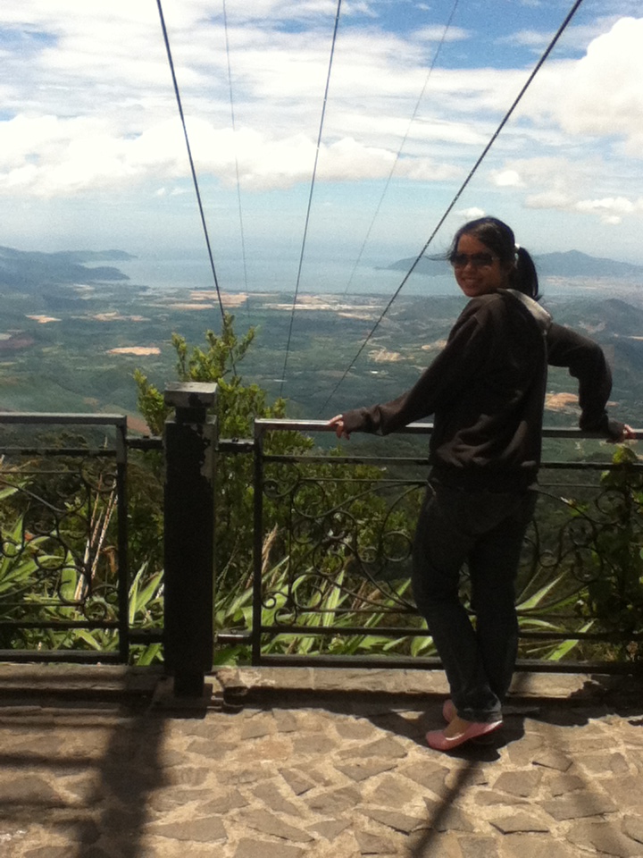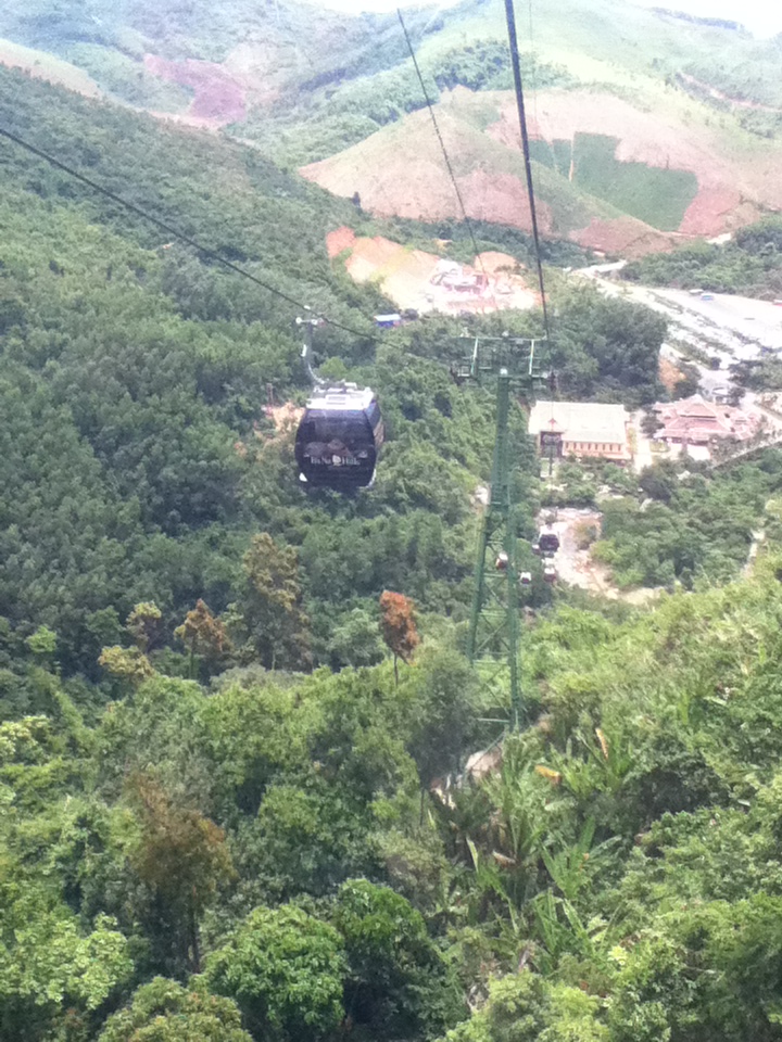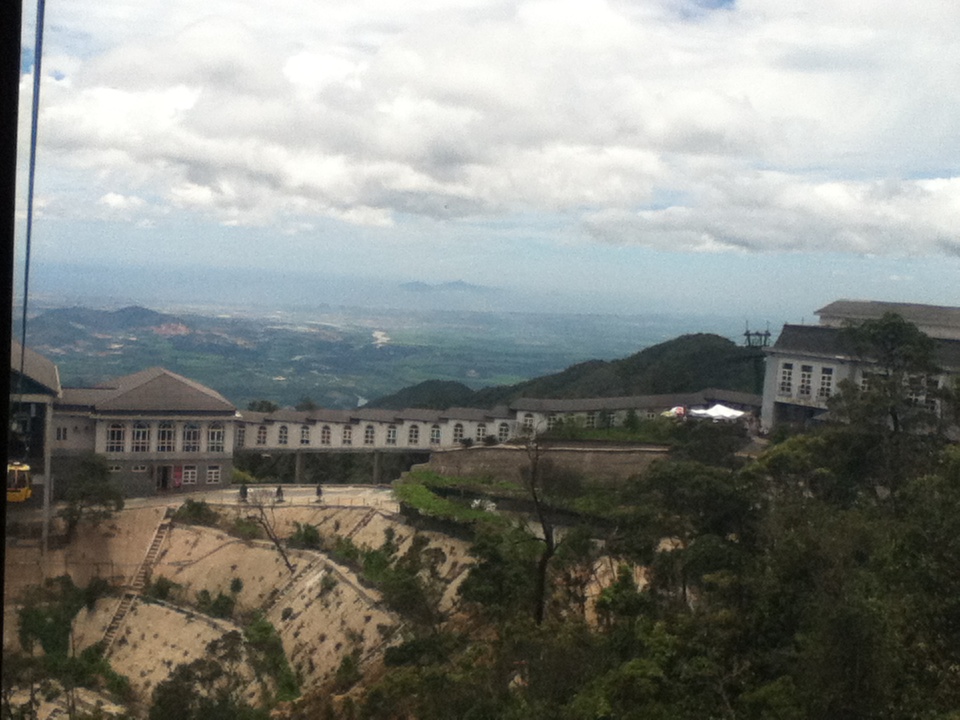 Cáp treo dừng lại ở trạm đầu tiên. Hai đứa tha hồ ngắm cảnh trạm nghỉ, cũng như là khu biệt thự dành cho những người muốn cắm trại tại núi Bà Nà vào ban đêm có thể vào ngủ nghỉ. Cảnh nhìn từ Bà Nà xuống khá đẹp, nhưng cái làm hai đứa ấn tượng nhất chính là cái không khí lạnh tê tái của vùng núi cao. Đi xa hơn để tham quan thì hai đứa gặp một khu chùa cũng khá tôn nghiêm nên không chụp hình nhiều.