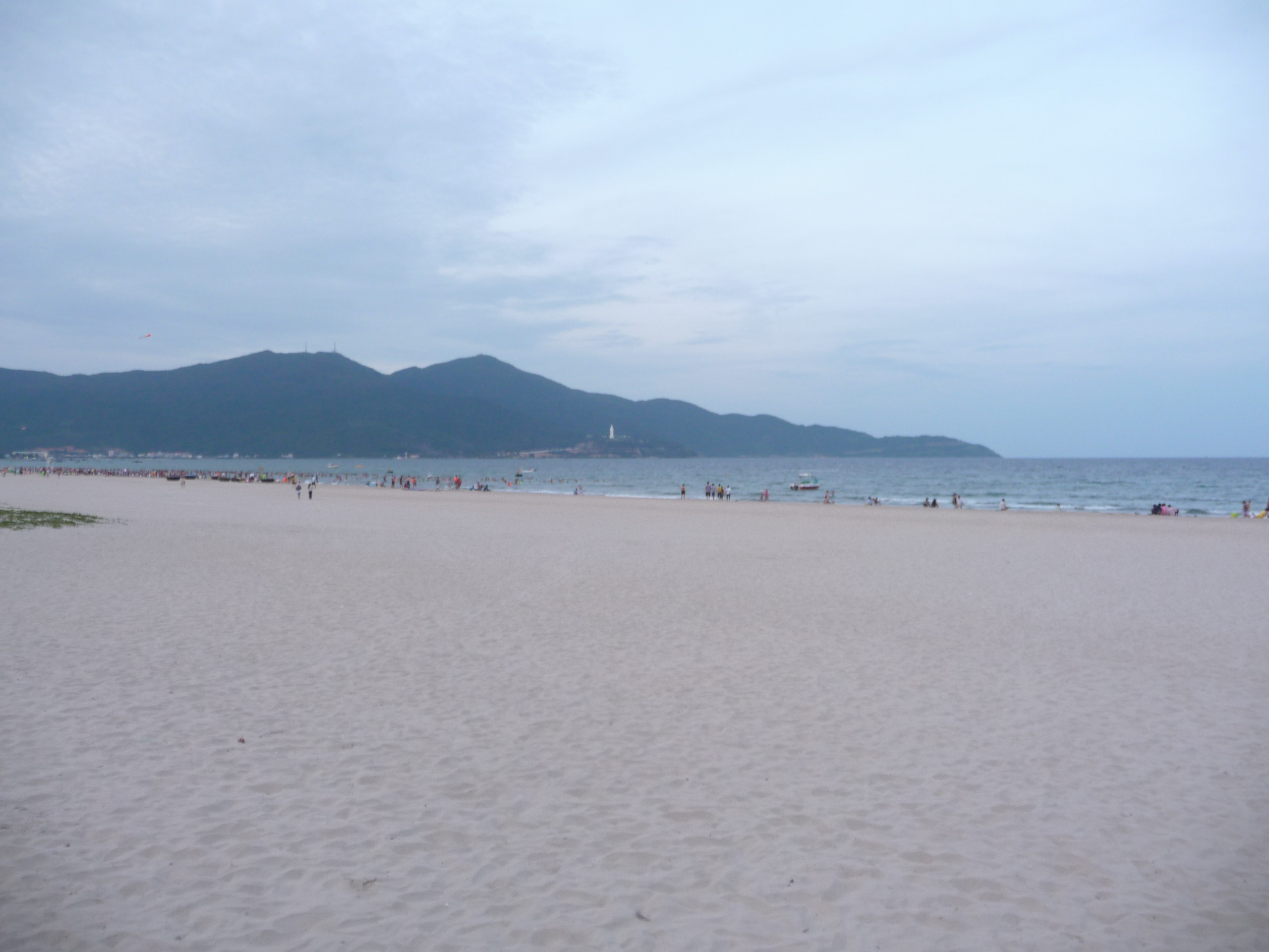 Chiều tầm 4pm, hai đứa xách xe chạy ra bãi biển Phạm Văn Đồng. Đây là một bãi biển công cộng nên khá đông người dân đến tắm. Chỉ cần gửi xe với giá 5,000đ là tha hồ thoải mái tắm bao lâu cũng được. Bãi biển Phạm Văn Đồng tuy là bãi tắm chung nhưng lại cực kì sạch đẹp. Từ lần đầu tiên đến đây, mình cũng đã hết sức bất ngờ về sự sạch sẽ của nơi này, hoàn-toàn-không-có-rác nha!
