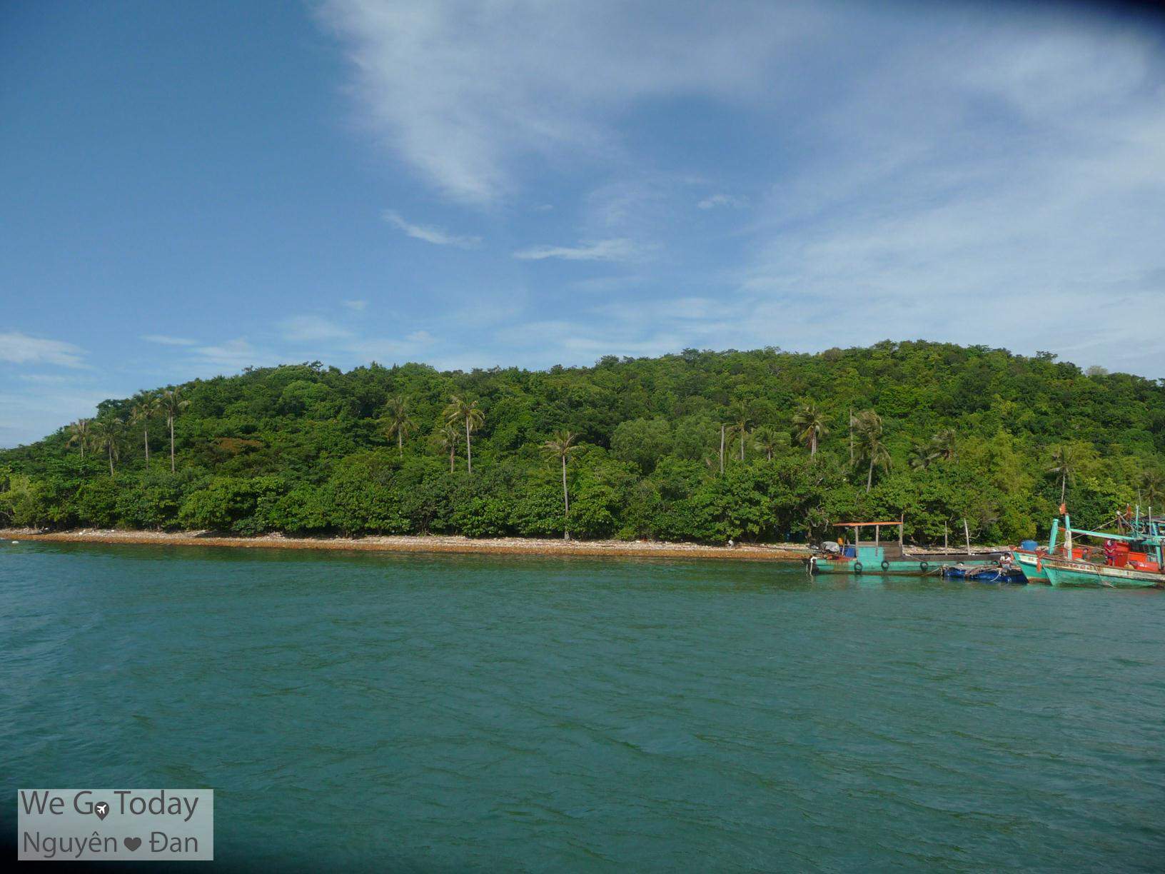 Từ resort đến bến tàu khoảng 13km, đi xe mất khoảng 10 phút. Đến nơi thì cả đoàn lên tàu, bắt đầu hành trình 45 phút trên biển ra quần đảo Bà Lụa. Nếu bạn nào say tàu xe thì tốt nhất là cứ ngồi ở phần dành cho hành khách. Mặc dù gió hơi lạnh, nhưng mà nhờ gió trời mà bạn sẽ không bị say sóng. Đừng dại chui vào khoang lái để tránh gió, ở đó bạn càng dễ say hơn.