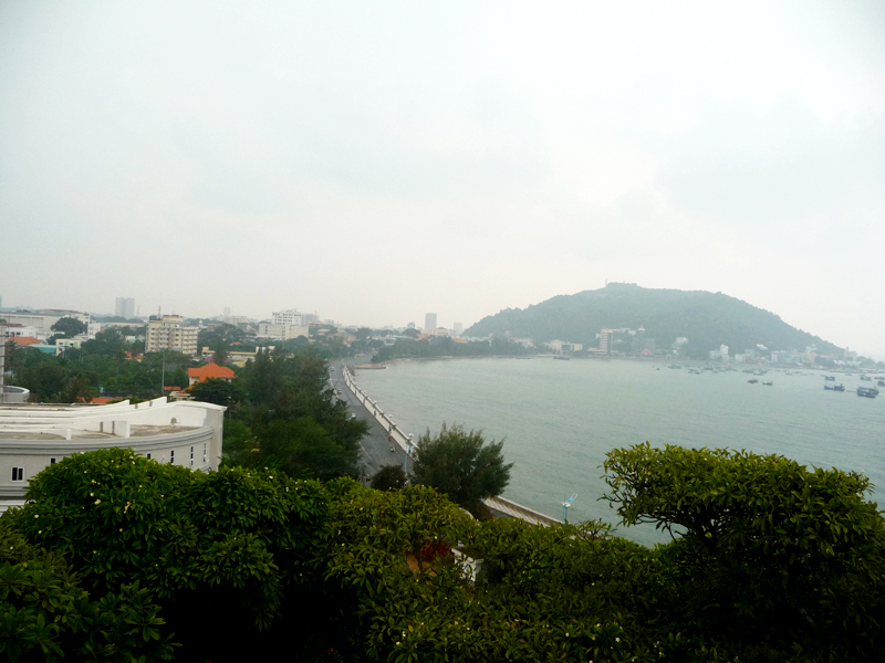 Ăn bánh khọt xong, tụi mình tính đến Ocap I trên đường Hạ Long uống cafe, nhưng đến nơi thì hết bàn, đành sang quán khác thôi. Tụi mình đi một đoạn thì thấy có quán cafe Hải Đăng, cũng theo cấu trúc xây cao, men theo triền núi, nên ghé vào, tìm view vừa ngắm cảnh vừa uống nước. Cảnh cũng đẹp mà giá cũng phải chăng, cafe đá là 22,000đ và cafe sữa đá là 25,000đ.