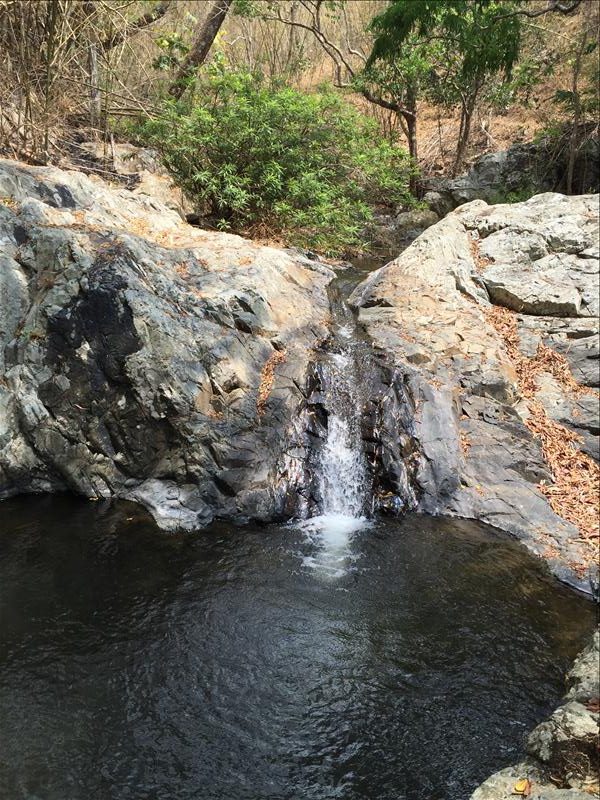 Cuộc hành trình 1/2 ngày thứ 2 là một hành trình khó khăn hơn, khi tụi mình phải xuống 1 cái “vách” (miêu tả xuống dốc cao) dài khoảng 1km để tới được thác đầu tiên – Thác 7 tầng. Sở dĩ, nó có tên là thác 7 tầng vì nó gồm các tầng nhỏ nhỏ, và tổng cộng có 7 cái giống như vậy. Cả đám dừng lại tắm thác, ăn trưa trước khi qua Thác Yaly để cắm trại và nghĩ đêm.