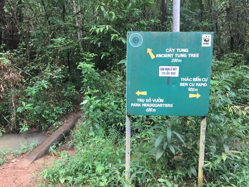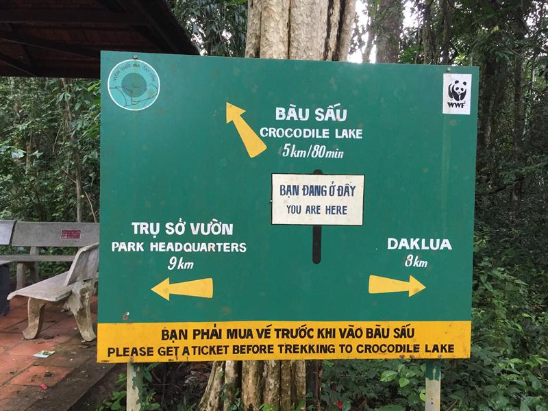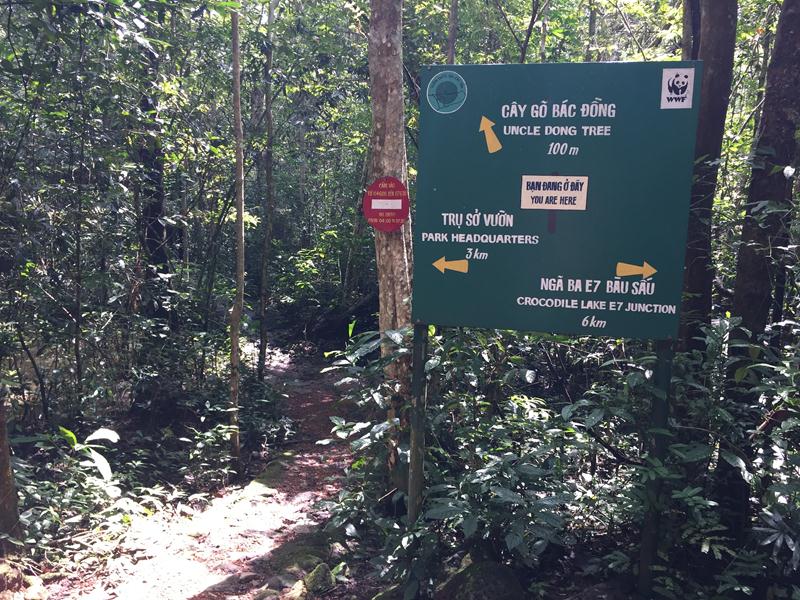 Ăn xong, cả đám tiếp tục di chuyển trên con đường mòn hướng về Bàu Sấu. Ở NCT, các biển hướng dẫn có rất nhiều cho khách tham quan