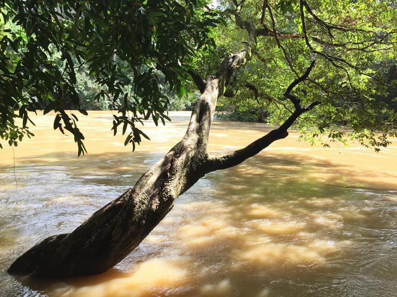 Đợt này tụi mình đi trúng ngay mua mưa, nên nước rất cao, có một đoạn phải lội qua. Trên đường đi có rất nhiều cảnh đẹp và hoang sơ, như cây đại thụ, tiếng chim kêu và có cả mấy con khỉ nhảy qua nhảy lại.
