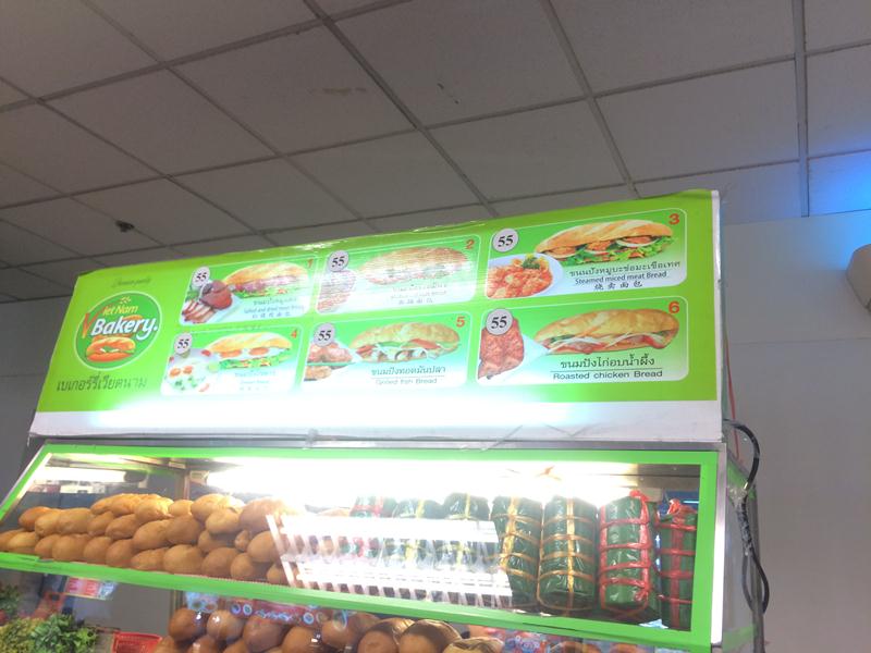 Ngay cổng food court là quầy bánh mì, tụi mình mua 1 ổ với giá 55B. Hầu hết ở các food court, sẽ có 1 quầy bán thẻ/phiếu. Nên tụi mình phải đến đây mua thẻ/phiếu trước khi đến quầy bán đồ ăn.