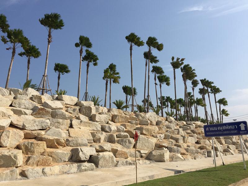 Từ quốc lộ, đường vào Nong Nooch khá đẹp, nhiều cây trồng thẳng hàng, xanh mướt. Nhưng mình hơi thất vọng là đa số mấy vườn cây mình từng đi, chỗ nào cũng nhiều cây đại thụ, đi vào là thấy mát mẻ ngay, nhưng chỗ này thì đa số là cây lùn lùn, trồng trong chậu không à.