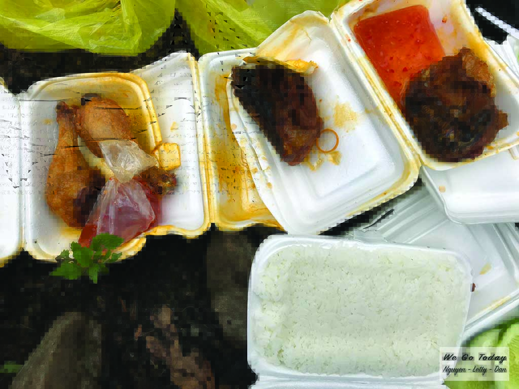 Trưa hôm nay, tụi mình có cơm gà mang từ Đà Lạt lên. Mỗi bạn là 1 hộp cơm với 1 phần gà khá bự + canh khổ qua. Ăn xong là đủ năng lượng cho từ sáng tới giờ.