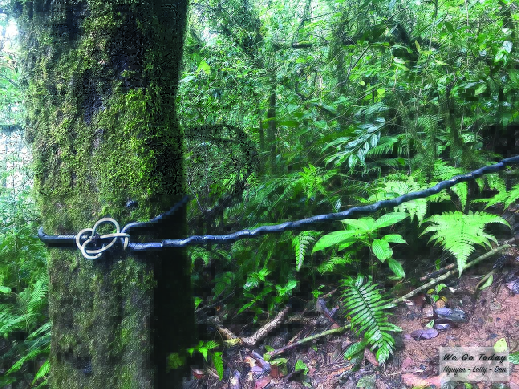 Từ cụ Pơ Mu, đi thêm tầm 1 tiếng đồng hồ nữa, nhóm sẽ tới con dốc lên đỉnh, vì dốc này quá cao nên bên Vườn Quốc Gia đã bắt dây cho người leo cầm vào dây rồi đi lên, tránh trường hợp không trơn trượt.