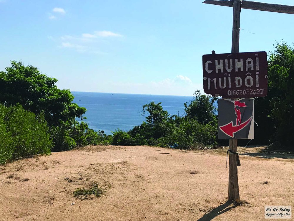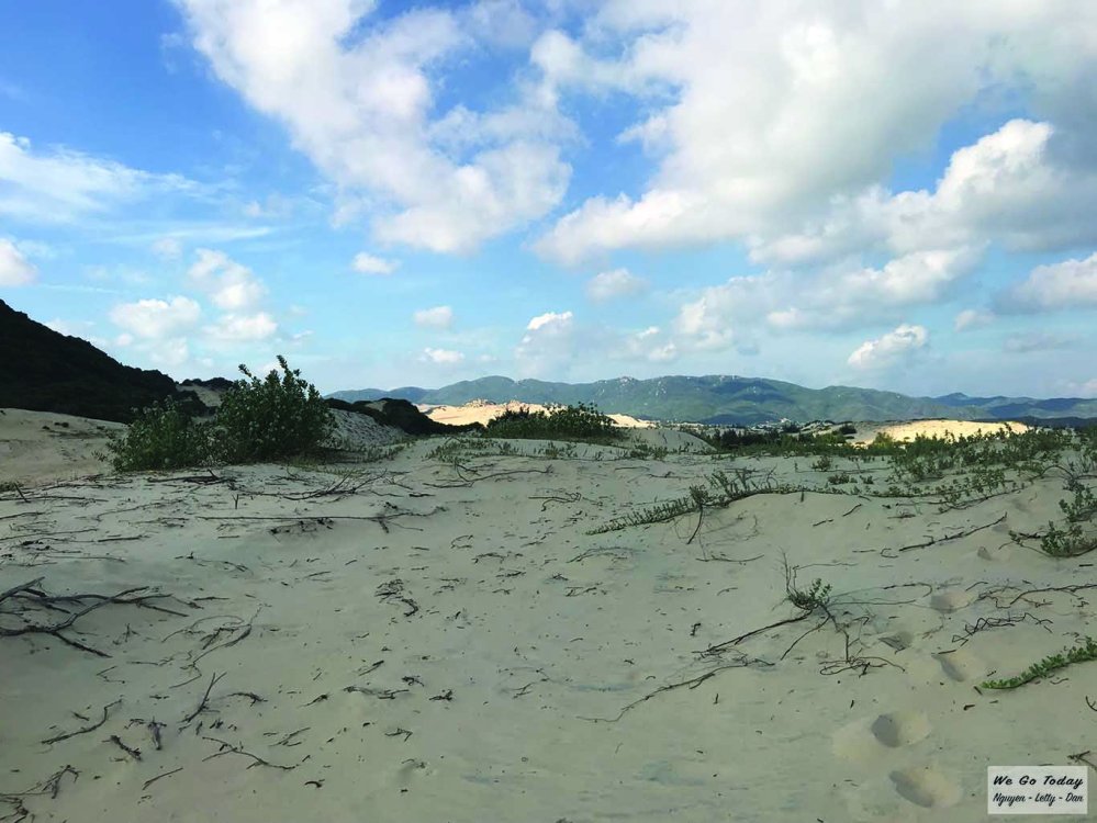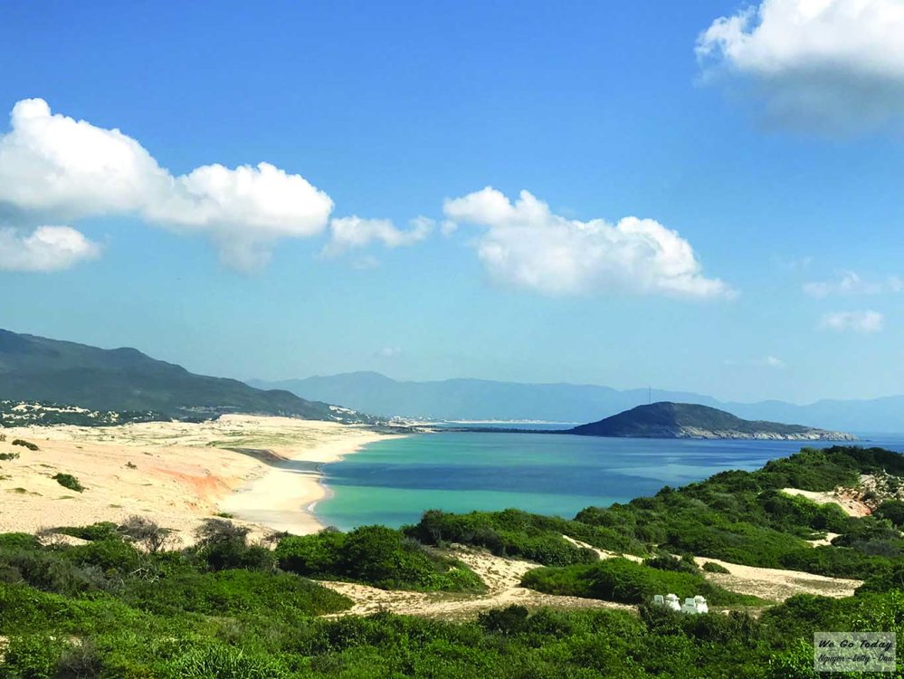 Đoạn đường tiếp theo trong chuyến đi là rừng khô, ít bóng cây và lên dốc cao. Nhưng bù lại, khi lên đây sẽ thấy toàn bộ vịnh Vân Phong với bờ cát trắng, mịn bên cạnh biển xanh và êm đềm.