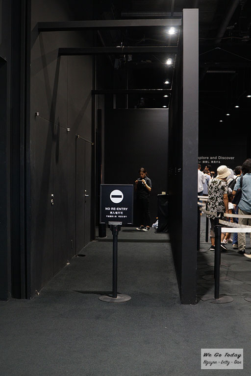 Ngoài lượt xếp hàng bên ngoài bảo tàng thì bên trong có 2 khu mini show nhỏ, phải xếp hàng khá lâu. Mình chỉ xếp hàng vào mỗi show Floating Nest thôi. Chờ khoảng 1 tiếng, và show diễn ra trong 5 phút. Tiếc là show này mình quên không chụp hình. Nhưng đại loại là vào bên trong, mọi người sẽ nằm lên 1 tấm lưới đan bằng dây thừng khổng lồ, và xem video chiếu trên mái vòm, rất bắt mắt và cuốn hút, vậy nên mình quên luôn cả chuyện chụp hình.