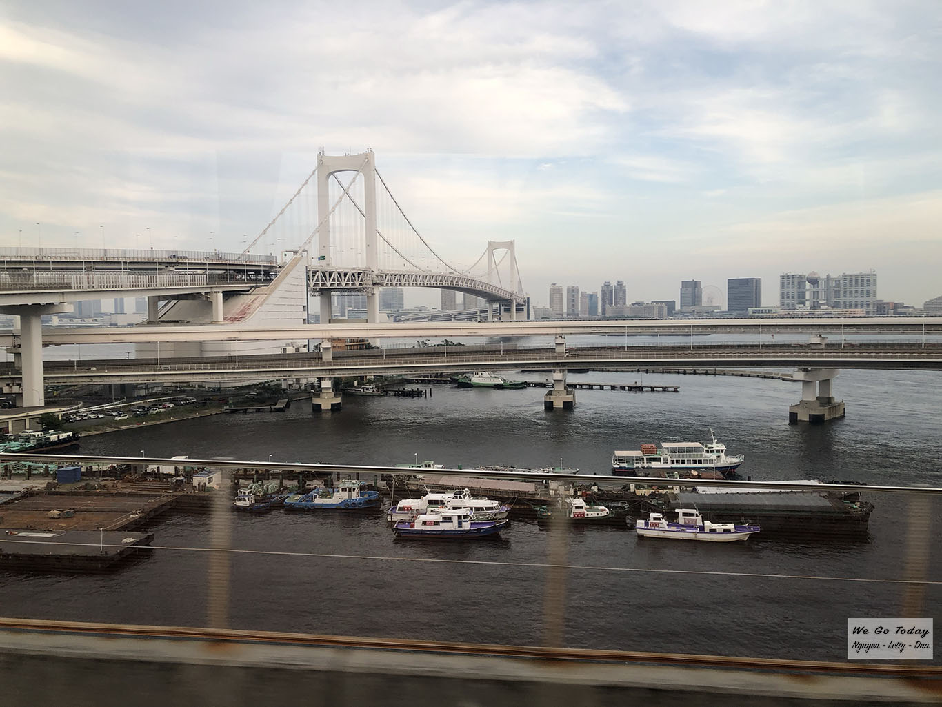 Đầu tiên, từ đây, nhìn ra, bạn có thể nhìn thấy Rainbow Bridge, cạnh vòng xoay Odaiba.