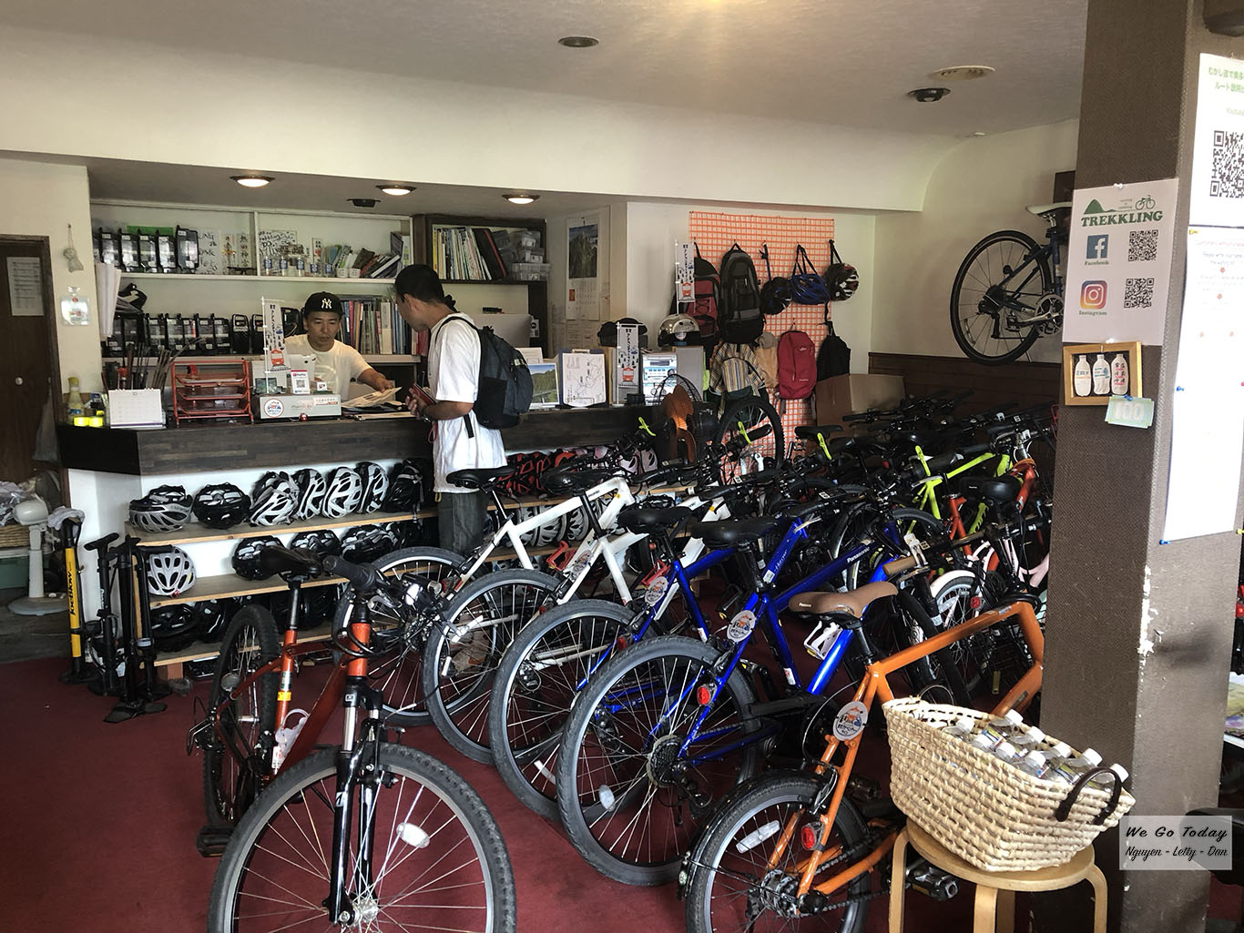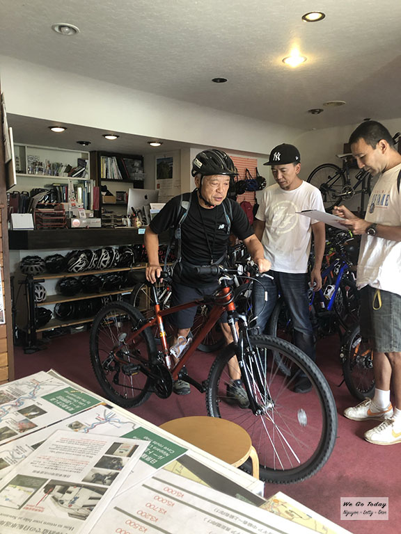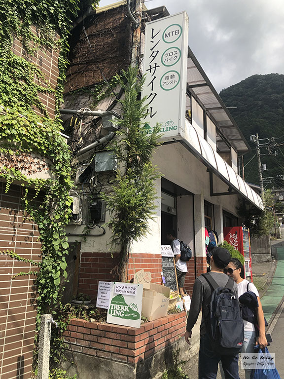 Từ ga Tokyo, tụi mình đi tàu mất khoảng 1 tiếng 30 phút mới tới Okutama. Khi contact FB Trekkling, họ có hướng dẫn cho mình chi tiết về thời gian và cách đi tàu điện để tới cửa hàng của họ tại Okutama, rất chi tiết. Giá thuê xe cũng đa dạng, tuỳ loại xe. Mình cũng hỏi qua FB trước để được tư vấn loại xe phù hợp. Loại xe mình thuê là Sugar Drop, xe đạp có điện trợ lực, giá thuê ¥3200/chiếc/ngày. Căn bản thì đây vẫn là xe đạp, và bạn vẫn phải đạp, nhưng do có điện trợ lực nên ở những khúc đạp lên dốc, bạn sẽ đỡ mệt hơn do có trợ lực –> đạp nhẹ hơn.