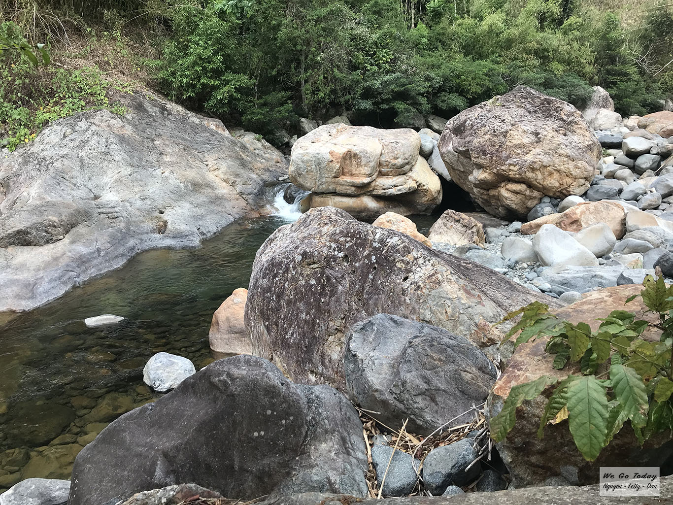 Suối đá ở đây đang mùa cạn nước, nên toàn đá không là đá. Đôi lúc thấy những dòng sông nhỏ, nước ở đây có màu xanh rất đặc biệt.