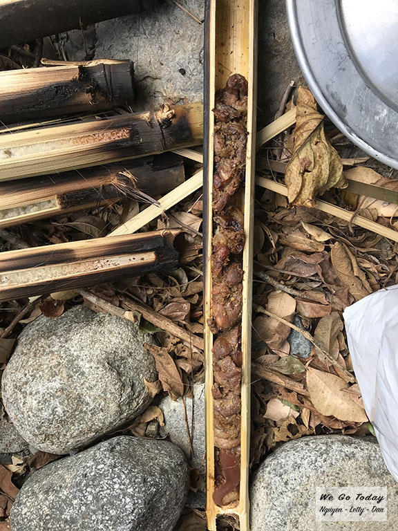 Đường về nhiều nắng nóng hơn, thành ra những phút giây đi ngang mấy con suối lại trở thành những khoảnh khắc tuyệt vời hơn bao giờ hết. Trưa đó, tụi mình vẫn dừng lại chỗ mà tụi mình đã nghỉ trưa ngày hôm trước. Bữa trưa, tụi mình ăn cơm lam với thịt heo nướng ống tre.