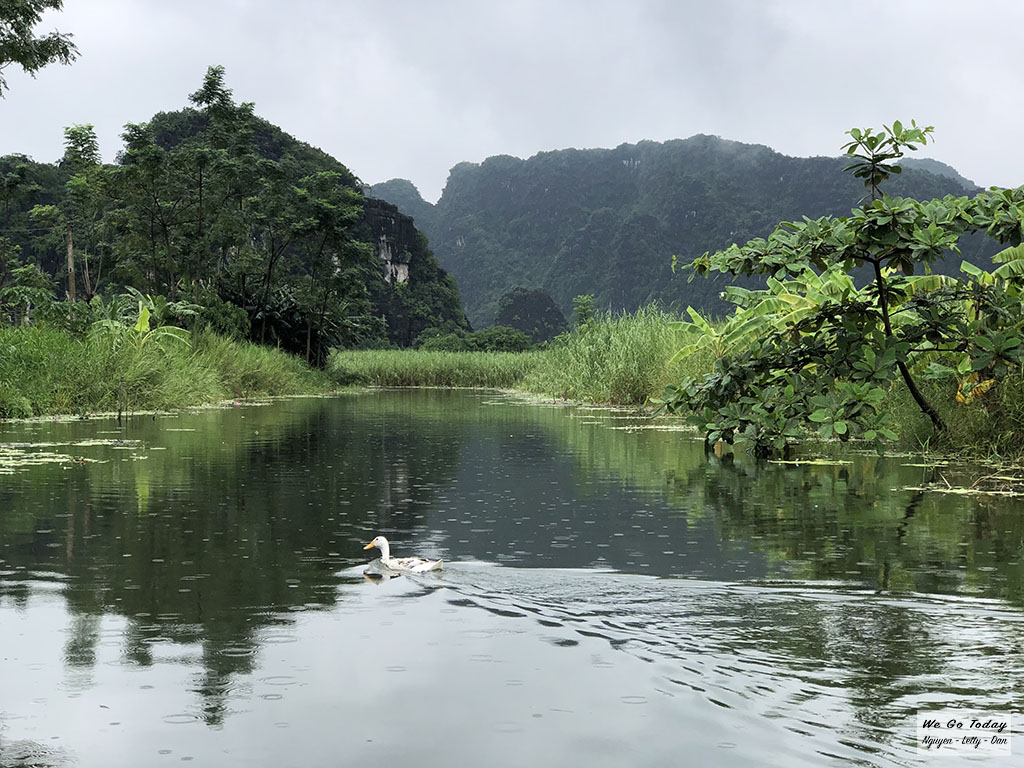 Sáng nay trời vẫn mưa, nhưng không mấy nặng hạt. Tụi mình có mặt ở bến thuyền Tràng An lúc 6:30, và là nhóm khách đầu tiên của ngày hôm đó.