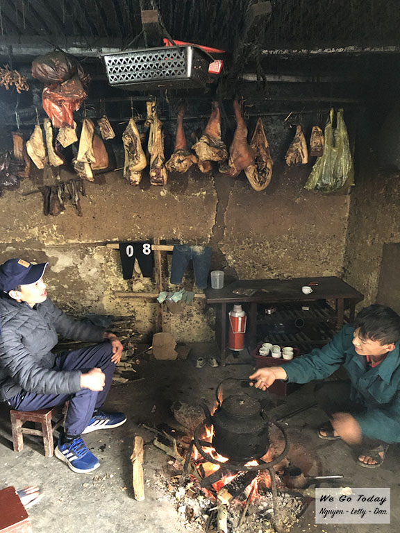 Sau khi săn mây, tụi mình về lại homestay, mang theo 4 gói mì gói và đi tham quan các làng xung quanh. Đói ở đâu, sẽ vào nhà người dân xin nước xôi để chế mì ăn, vừa gọn lẹ, vừa tiết kiệm được thời gian.