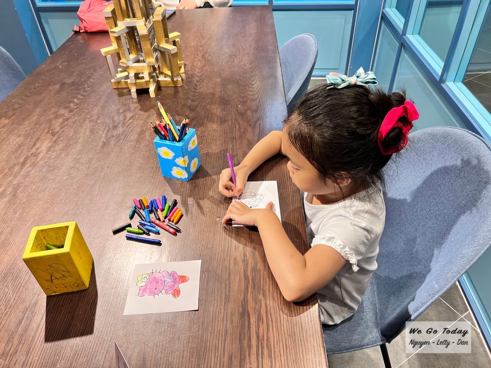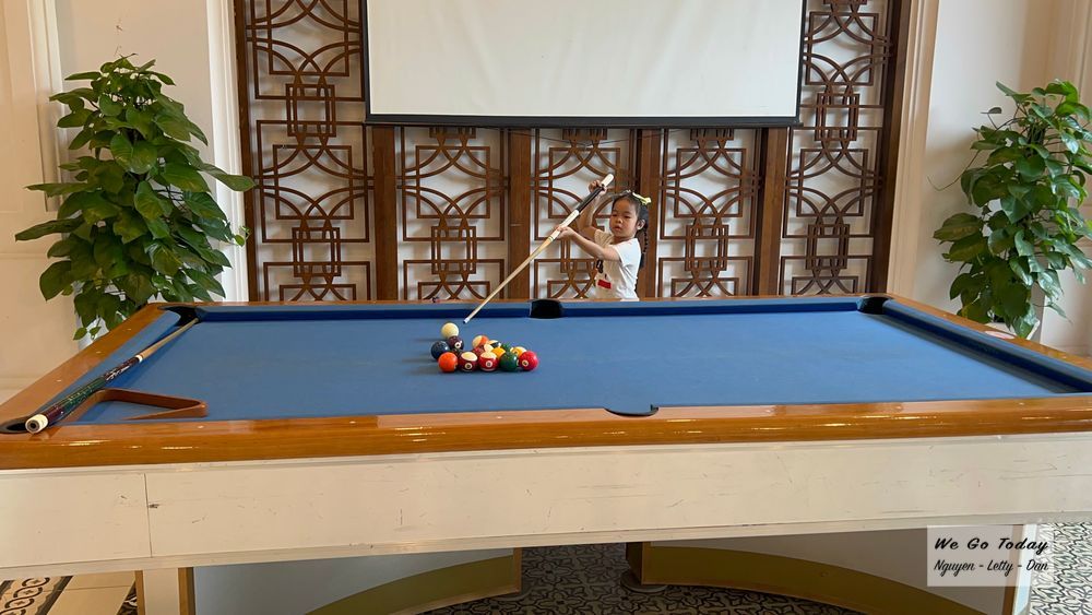 Tối đó tụi mình vẫn ăn ở khách sạn, đi vòng vòng chơi ở sảnh, phòng bi-da, kid room, rồi về phòng ngủ nghỉ.