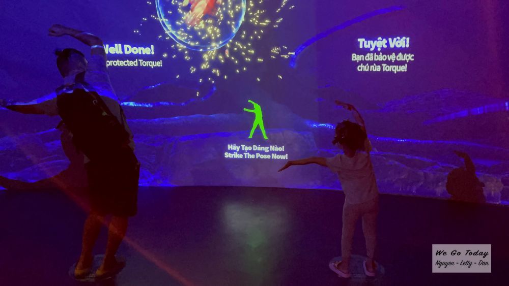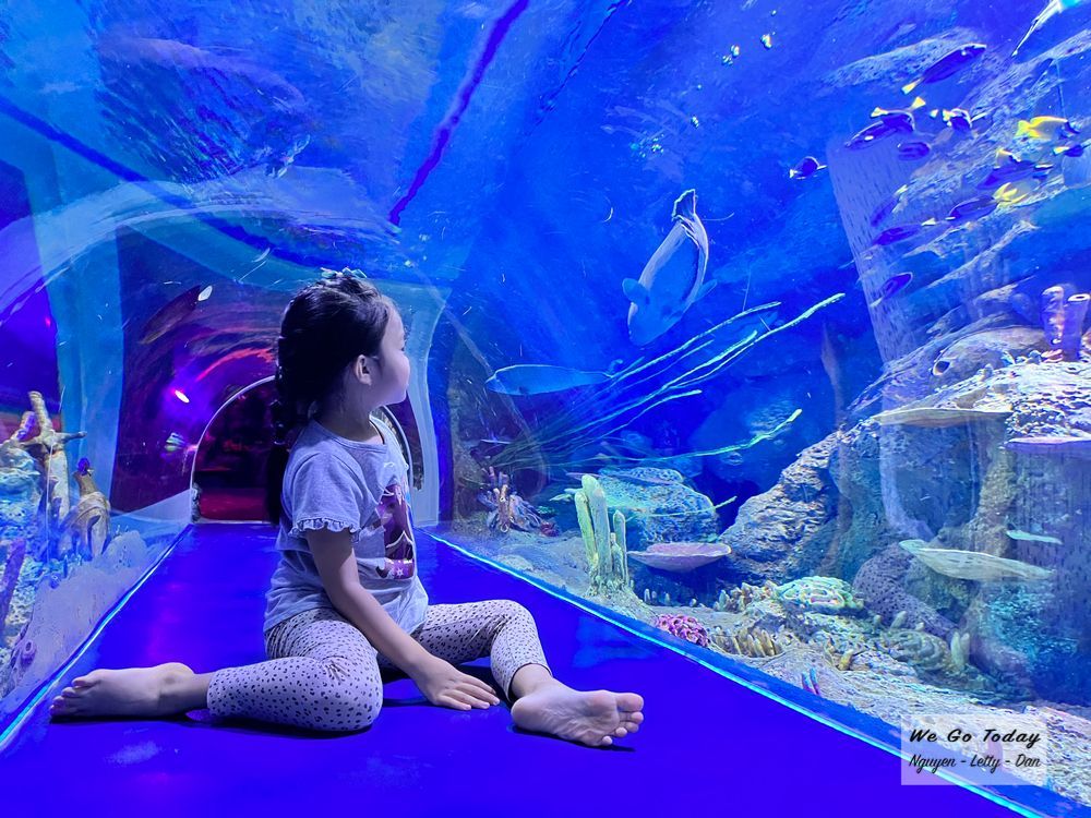 Tại VinWonders, tụi mình đi vào thuỷ cung chơi, rồi đi vòng vòng các khu khác, chơi trò chơi.
