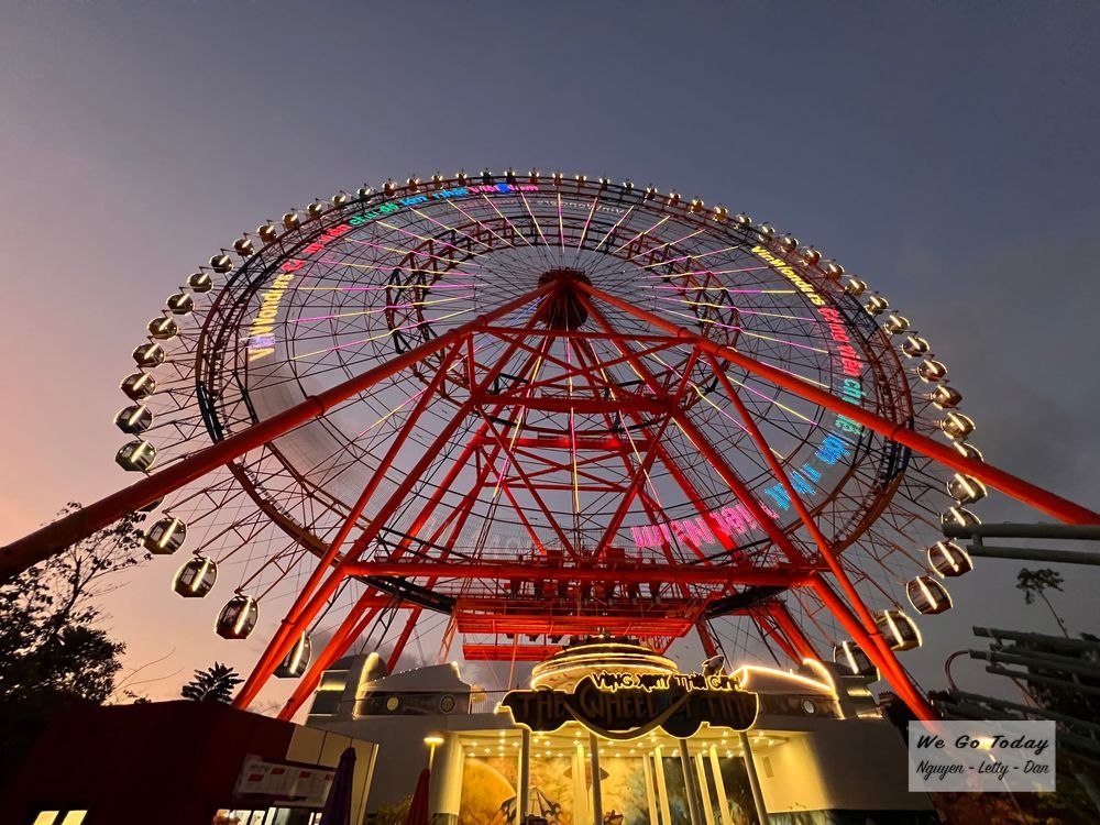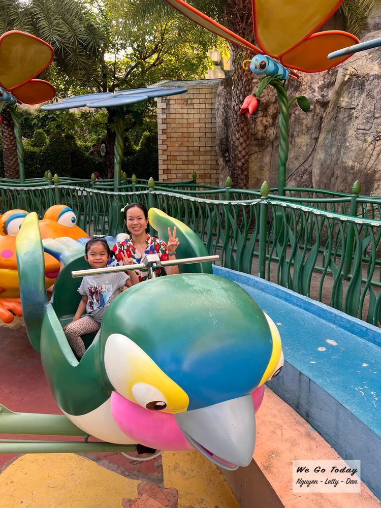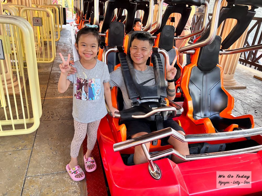 Tới chiều, Nguyên với Letty đi tới chỗ tàu điện siêu tốc. Lên đến nơi thì chỉ có Nguyên được chơi, Letty không đủ chiều cao nên đành ngồi nhìn, xị mặt. Sau đó, cả nhà sang vòng đu quay khổng lồ, đi 1 vòng mất tầm 20 phút, rồi tụi mình tản bộ dần dần ra cổng vì trời cũng xụp tối rồi.