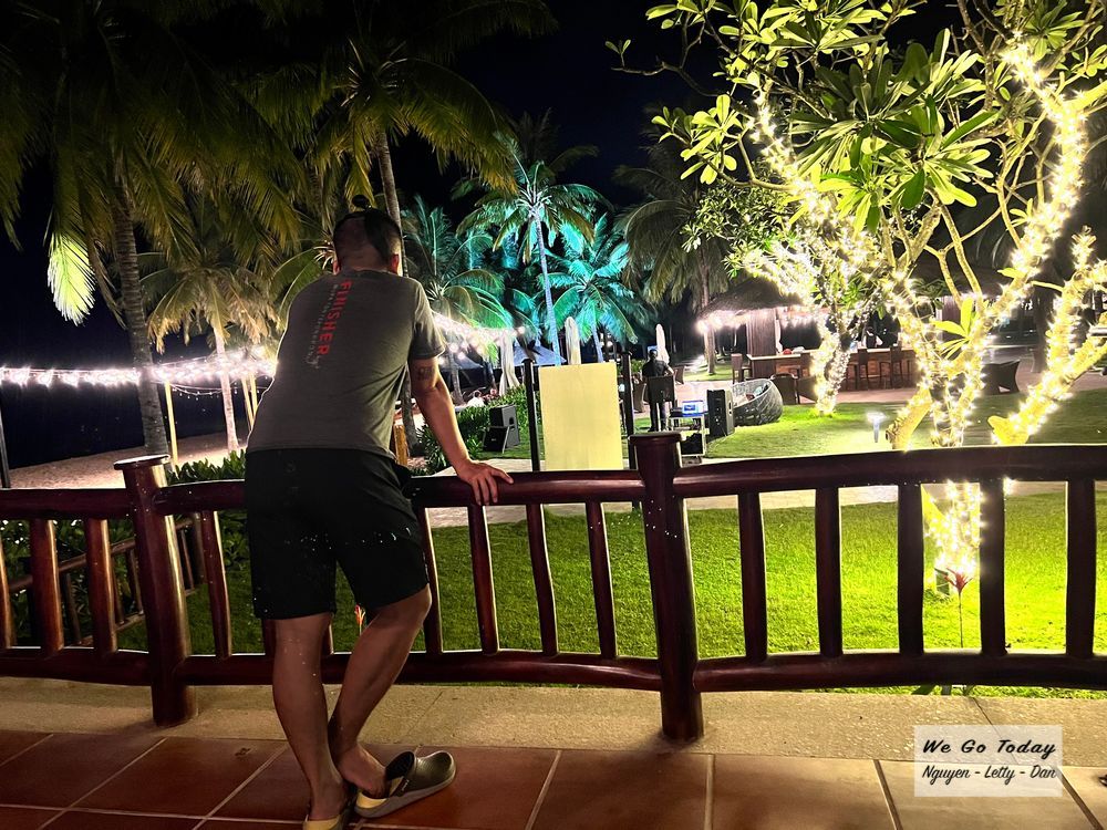 Tối đó, tụi mình vừa ăn tối, vừa nghe nhạc ở quầy bar sát biển.