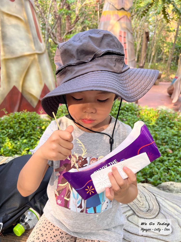 Trưa đó Letty chỉ ăn 1 cây xúc xích, 2 đứa mình thì ăn snack, haha.