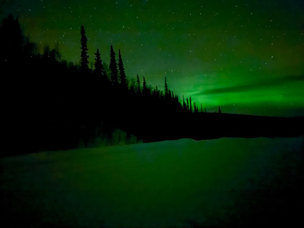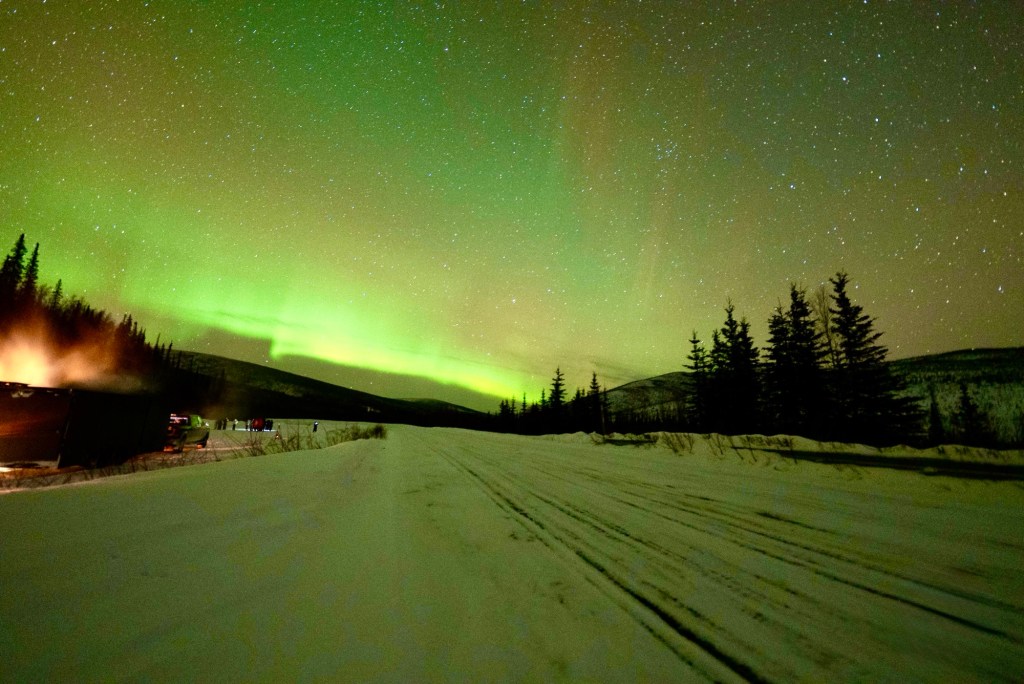 Xe của tour đón mình lúc 9PM và chở mình ra một ngọn đồi cách khách sạn tầm 50 mile, tại đây đã có những chỗ đốt lửa để sưởi ấm, quầy ăn uống free trong lúc chờ cực quang. Và điều gì đến cũng đến, cực quang xuất hiện trong cái lạnh -25 độ C ở trên đỉnh núi. Vợ chồng mình tận hưởng đêm Valentine đáng nhớ dưới bầu trời đầy cực quang.