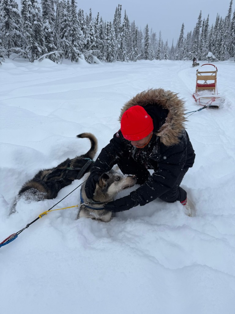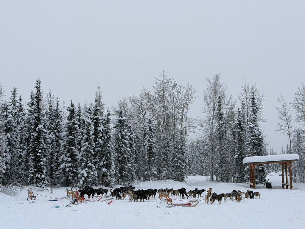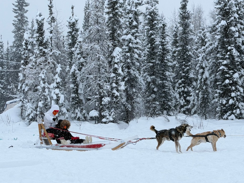 Nhận xe xong, mình bắt đầu đi tới Rod’s Alaskan Guide Service tại North Pole để đi Dog Sledding, tổng cho 3 người là 260$. Các bạn chó sẽ kéo mình băng qua những cung đường tuyết. Các bạn rất là ngoan nhé. Mình có thể chơi và chụp hình thoải mái. Theo thông tin mình hỏi được thì các bạn cũng là những vận động viên tham gia các giải đua chạy 300 miles của Fairbanks.