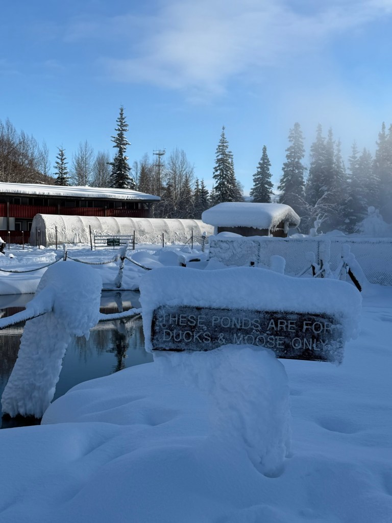 Vì Chena cách chỗ mình ở khoảng 1h30p lái xe, nên tụi mình quyết định dành trọn ngày hôm nay để tham gia nơi này. Đây là một khu phức hợp gồm nhiều dịch vụ: Chỗ ngủ, suối nước nóng, Ice Museum, các tour như là Dog Sledding, ngắm cực quang, chạy xe trên tuyết, etc.