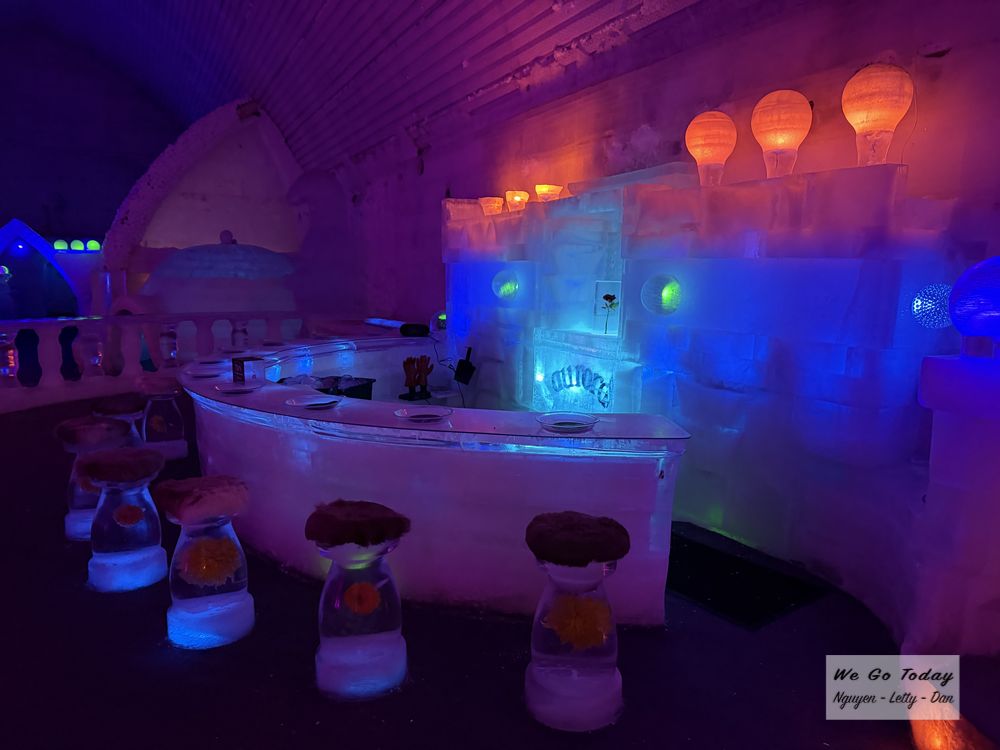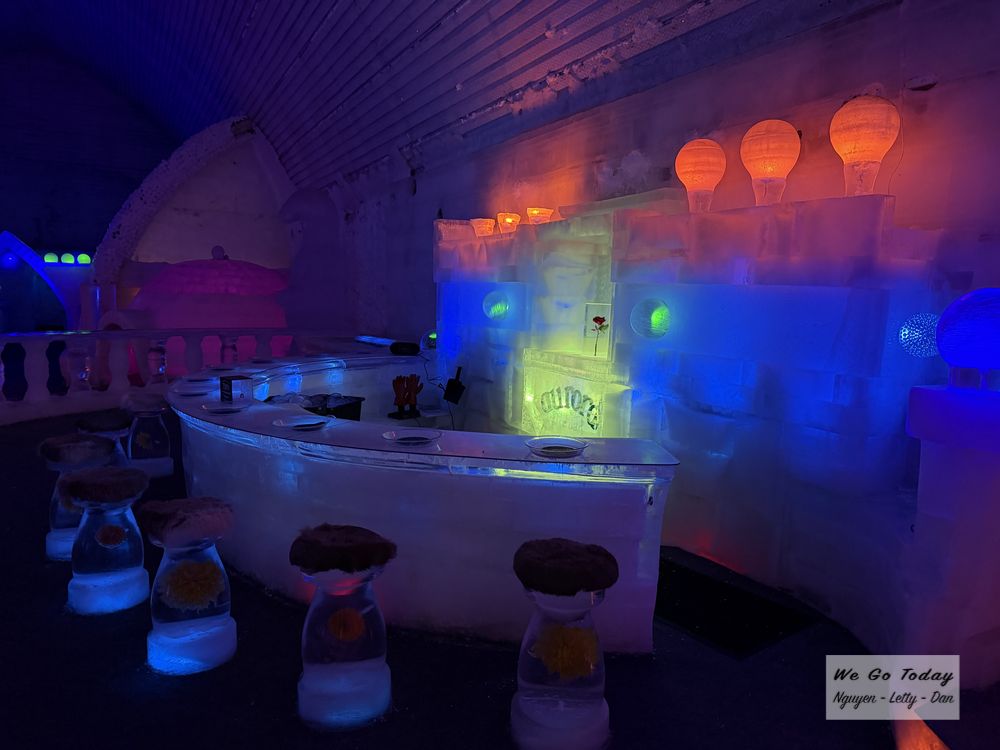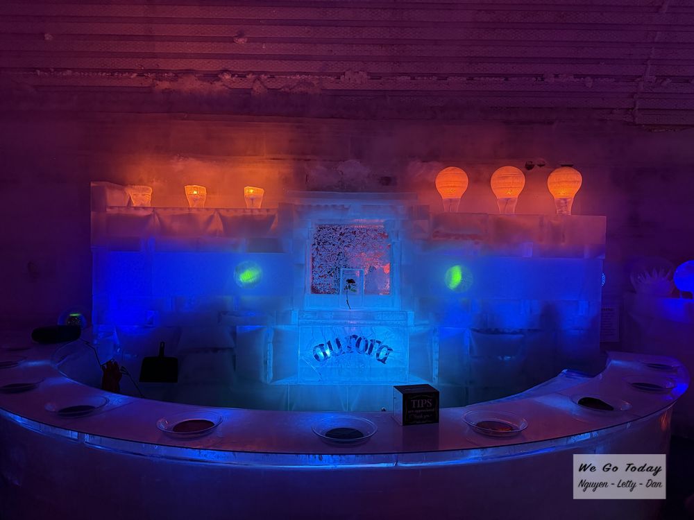 Tụi mình tới đây tham quan Ice Museum trước, nhưng đây không phải là Museum mở cửa liên tục mà là mở cửa theo giờ. Tụi mình phải qua khu Activities của khu resort này mua vé trước và đợi tới giờ thì mới có người mở cửa để tham quan. Tour thường thì 20$, nếu bạn muốn thưởng thức thêm martini trên ly bằng đá thì thêm 20$ nữa.