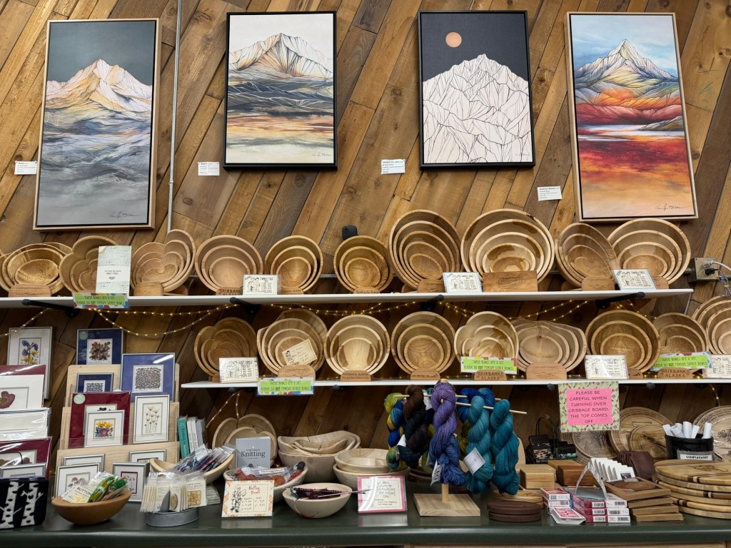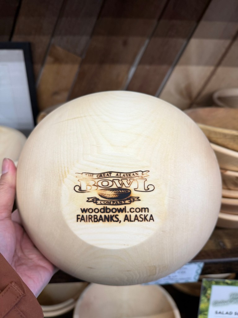 Trên đường về tụi mình có ghé thêm The Great Alaskan Bowl Company. Đây là một tiệm làm thủ công các đồ bằng gỗ. Theo như lời quảng cáo từ Google thì đây là tiệm cuối cùng của nước Mỹ theo mô hình dịch vụ này. Toàn bộ vật phẩm trong cửa hàng rất đẹp, nhưng đồng thời thì giá cũng cao vì là hàng thủ công.